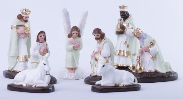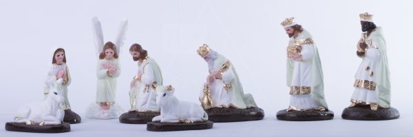 Nacimiento de 15cm Tradicional tono verde, hecha de yeso con ojos de cristal, 100% realizado a mano por artesanos mexicanos, cada figura que realizamos ponemos el corazón y el Alma en ellas.