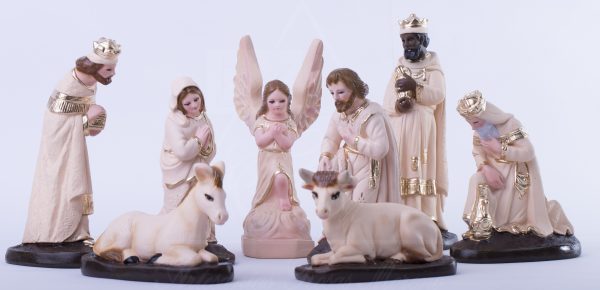 Nacimiento de 20cm Tradicional tono crema, hecha de yeso con ojos de cristal, 100% realizado a mano por artesanos mexicanos, cada figura que realizamos ponemos el corazón y el Alma en ellas.
