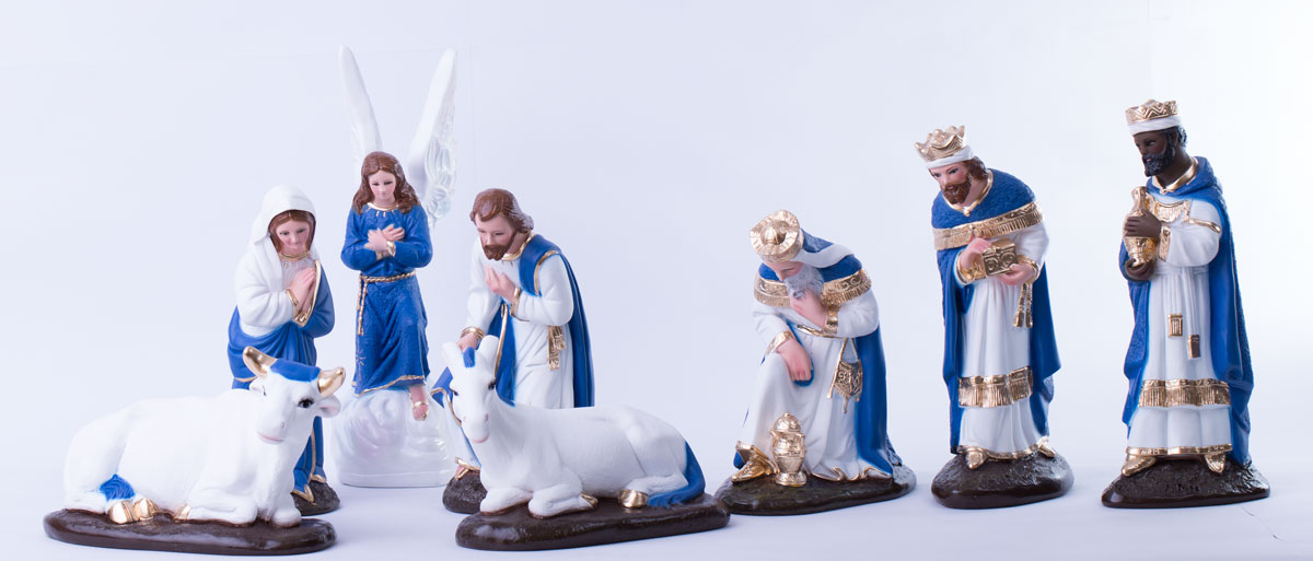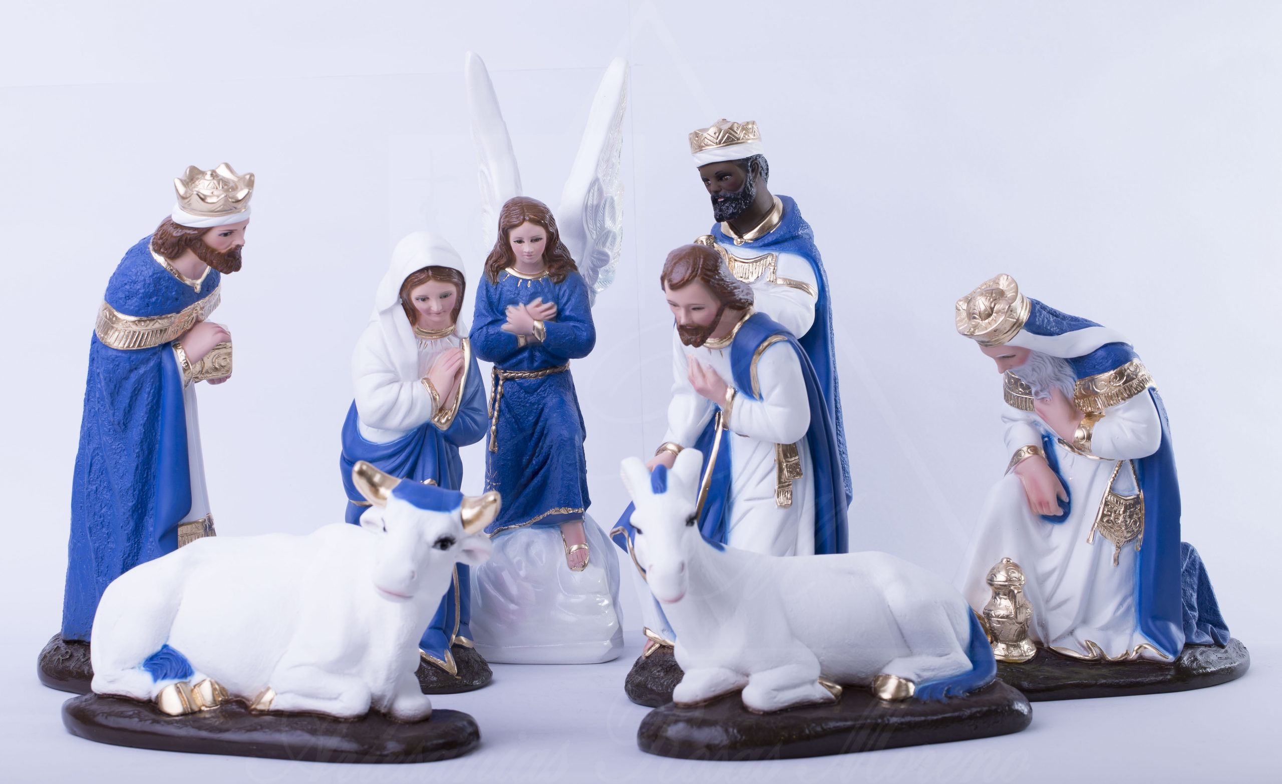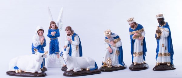 Nacimiento de 40cm Tradicional tono azul rey, hecha de yeso con ojos de cristal, 100% realizado a mano por artesanos mexicanos, cada figura que realizamos ponemos el corazón y el Alma en ellas.