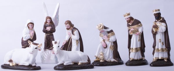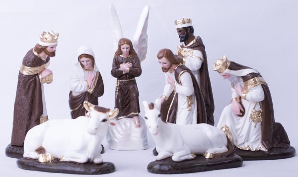 Nacimiento de 40cm Tradicional tono chocolate, hecha de yeso con ojos de cristal, 100% realizado a mano por artesanos mexicanos, cada figura que realizamos ponemos el corazón y el Alma en ellas.