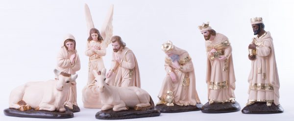 Nacimiento de 40cm Tradicional tono crema, hecha de yeso con ojos de cristal, 100% realizado a mano por artesanos mexicanos, cada figura que realizamos ponemos el corazón y el Alma en ellas.