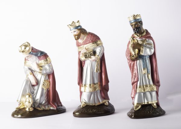 Nacimiento de 40cm Tradicional tono rojo metálico, hecha de yeso con ojos de cristal, 100% realizado a mano por artesanos mexicanos, cada figura que realizamos ponemos el corazón y el Alma en ellas.
