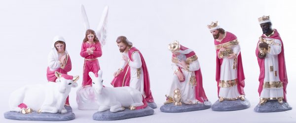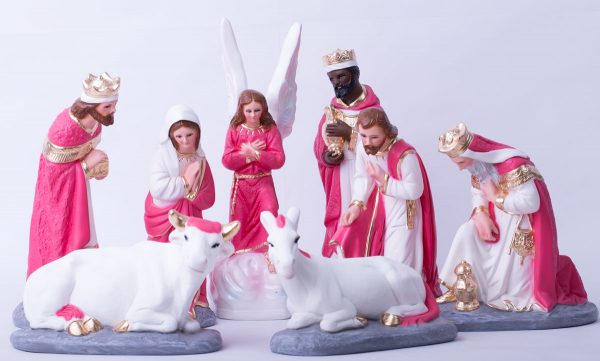 Nacimiento de 40cm Tradicional tono rosa, hecha de yeso con ojos de cristal, 100% realizado a mano por artesanos mexicanos, cada figura que realizamos ponemos el corazón y el Alma en ellas.