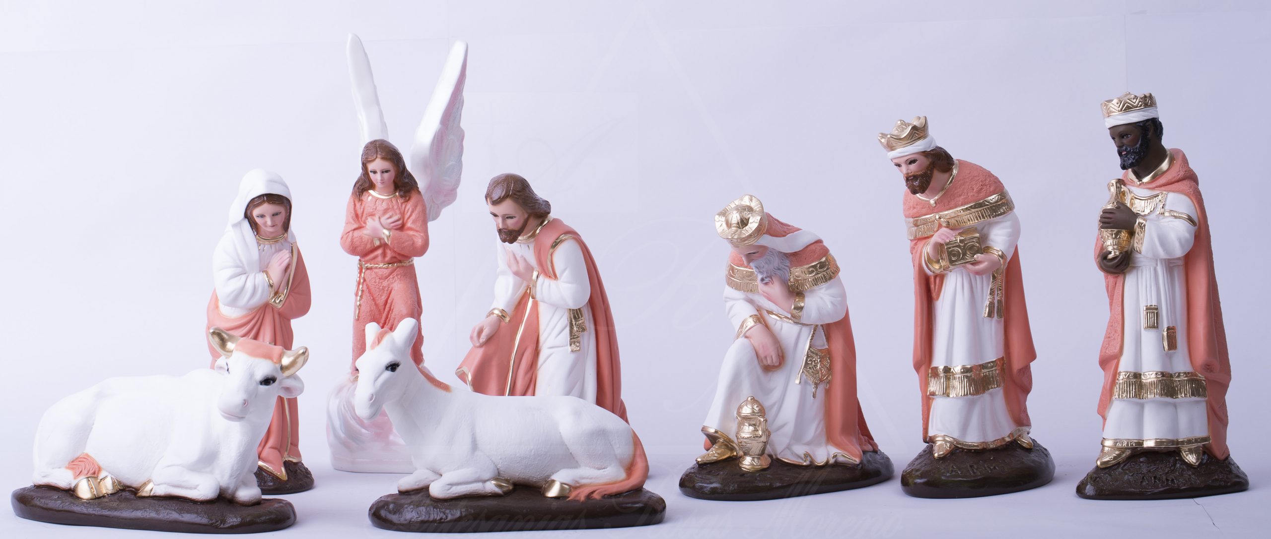 Nacimiento de 40cm Tradicional tono salmón, hecha de yeso con ojos de cristal, 100% realizado a mano por artesanos mexicanos, cada figura que realizamos ponemos el corazón y el Alma en ellas.