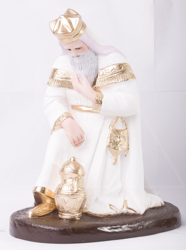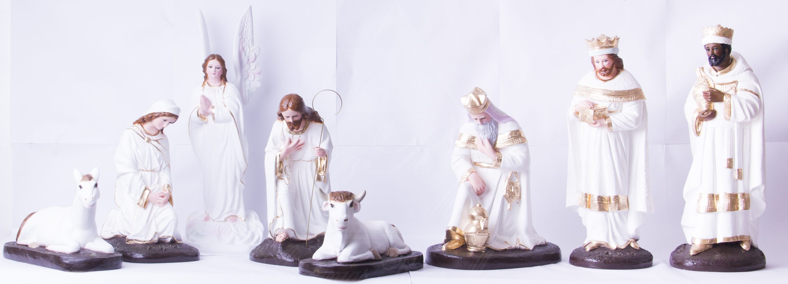 Nacimiento de 60cm Tradicional Tono Blanco, hecha de yeso con ojos de cristal, 100% realizado a mano por artesanos mexicanos, cada figura que realizamos ponemos el corazón y el Alma en ellas.