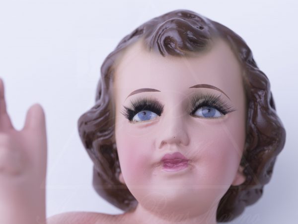 Niño Dios de 25cm, hecha de yeso con ojos de cristal, 100% realizado a mano por artesanos mexicanos, cada figura que realizamos ponemos el corazón y el Alma en ellas.